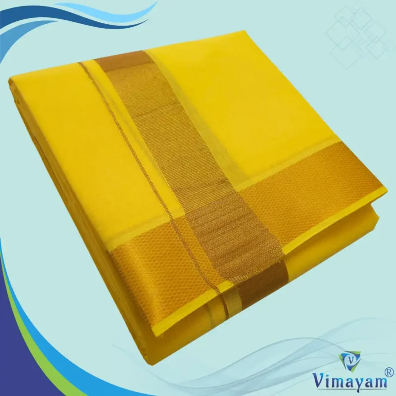 Yellow Color Dhoti with Golden Zari Border