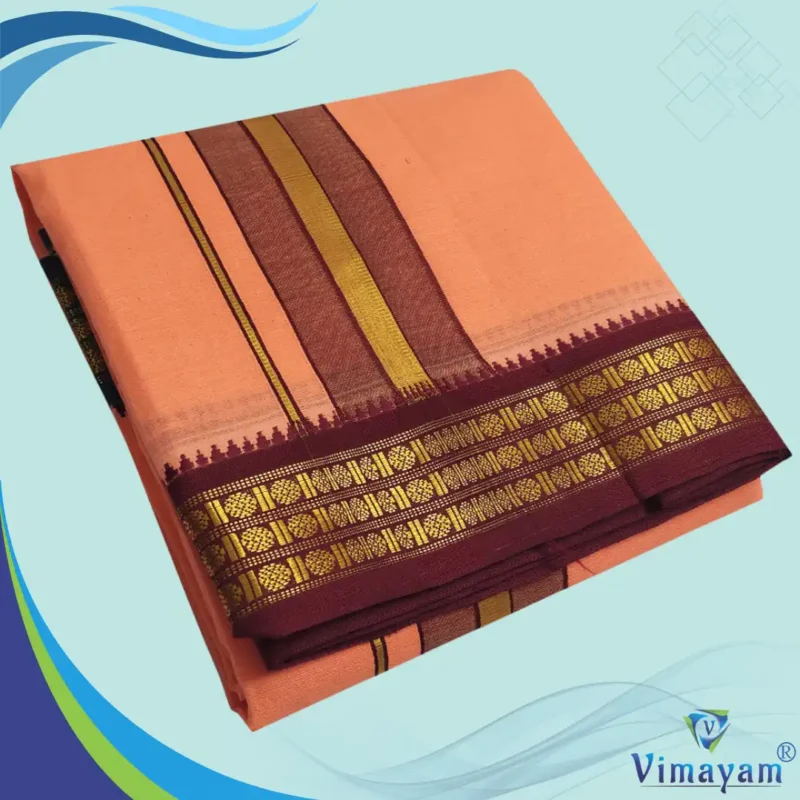 Peach Color Dhoti with Udraj/Coin Border Dhoti