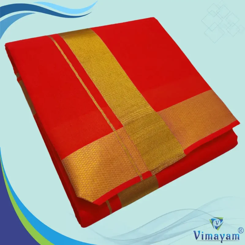 Red Color Dhoti with Golden Zari Border