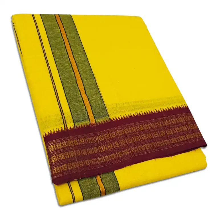 Note: Choose your item based upon the colour of the dhoti not by Border Design & Colour Combinations. The border Design and Colours are subject to availability. Do not place any order by mentioning specific Border design and Colours.