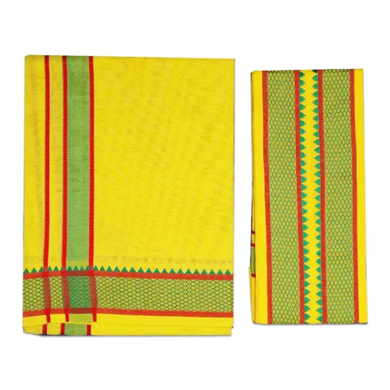 Yellow Color Mayilkan Cotton Lungi/Dhoti + Towel Combo