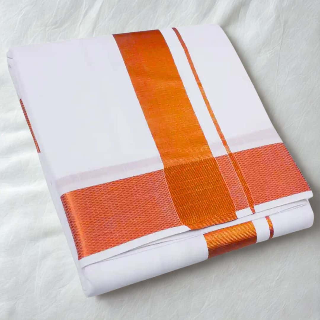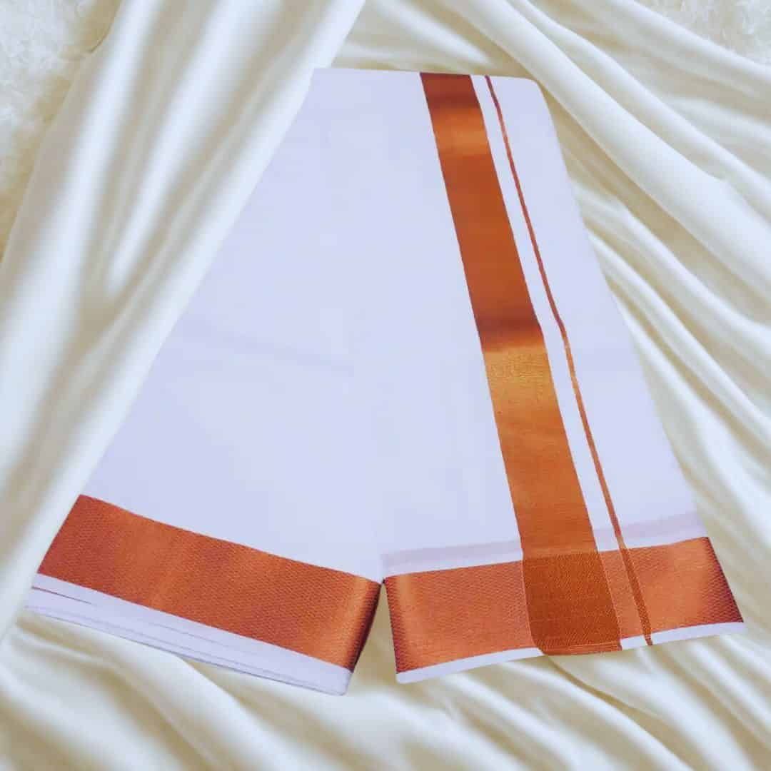 Be the first to review “2 Inch Copper Zari Premium Quality White Dhoti”