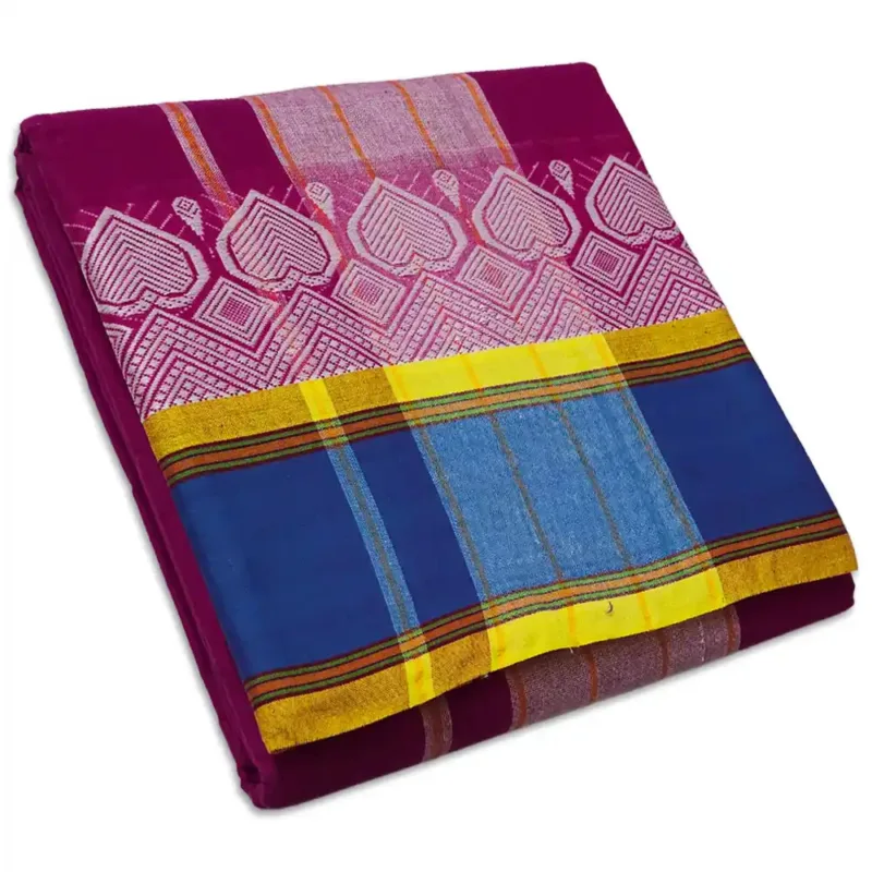 Dhoti Material: Pure Cotton Maroon Colour Dhoti Dhoti Size: 9x5 Vimayam Cotton Colour Gudanji Dhoti is having 4 Meter of Dhoti and 2.25 Meter of Towel. Both Dhoti and Towel attached together with running Material. The customer needs to be cut the Dhoti and towel from their end, or else please inform to our customer care immediately through whatsapp or Voice call, so that our team will cut the dhoti towel separately before dispatching the Material.Sandal Colour Dhoti 2 Inch Gundanji Fine Quality