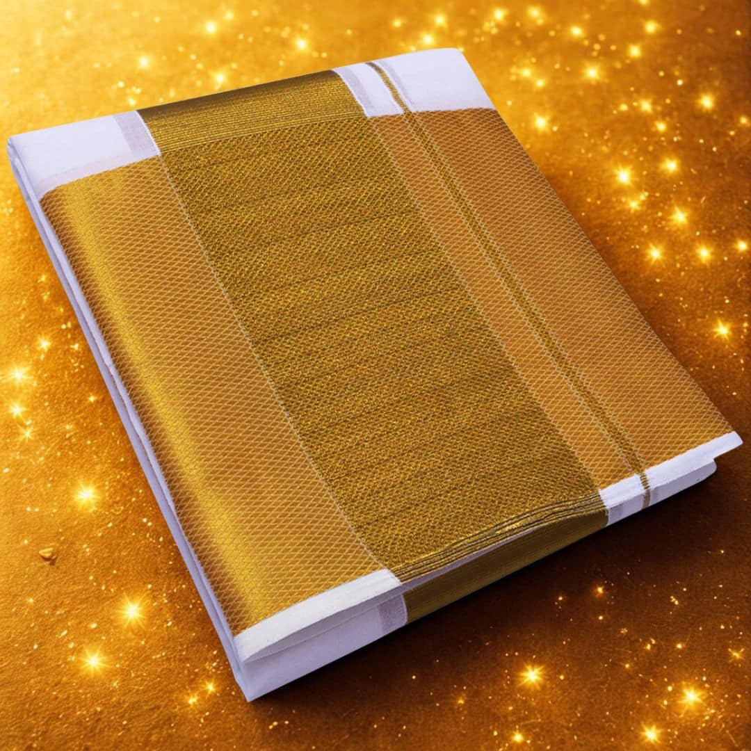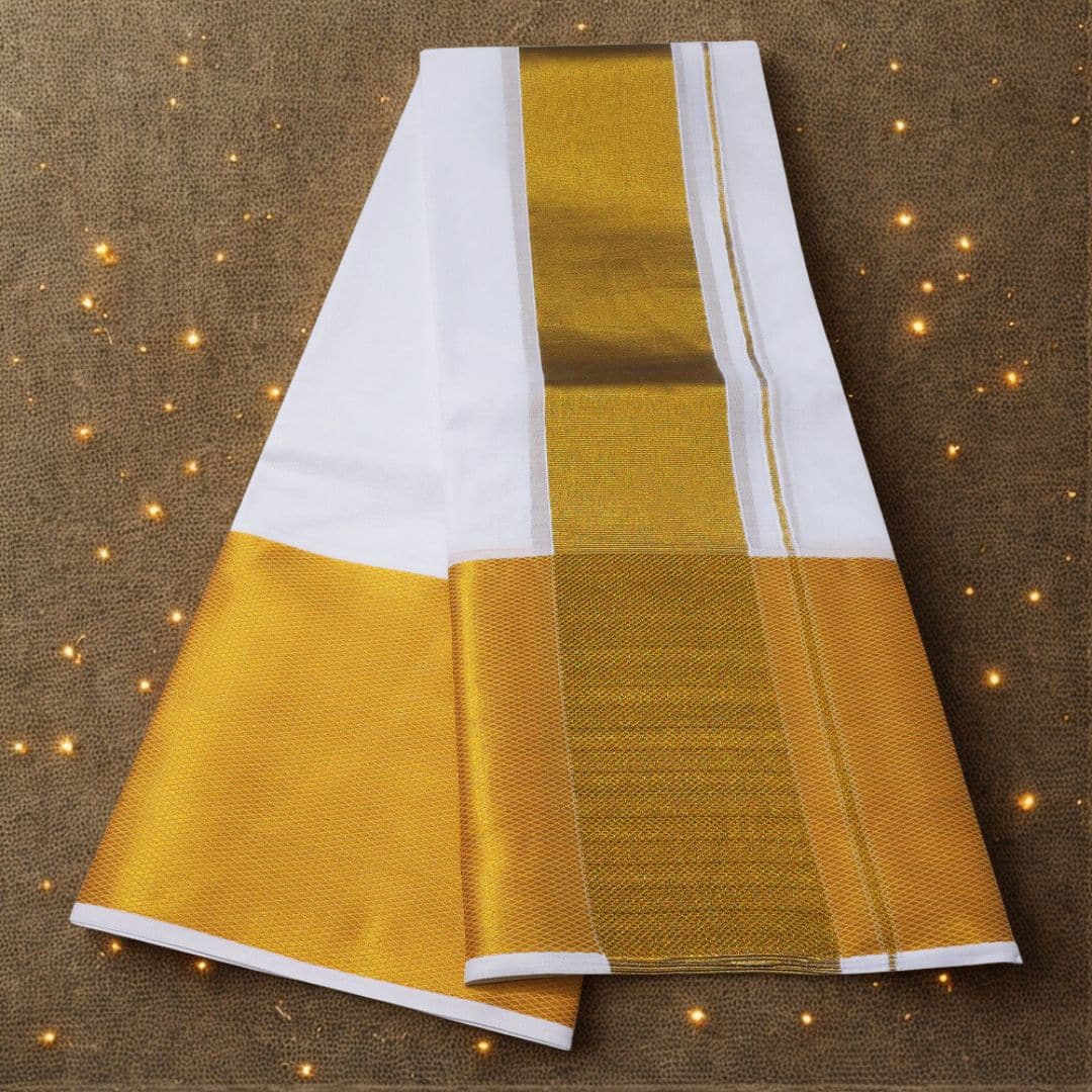 7 Inch Golden Zari Premium Quality White Dhoti