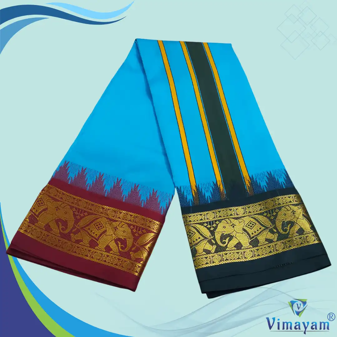 Note: Choose your item based upon the colour of the dhoti not by Border Design. The border Designs are subject to availability. Do not place any order by mentioning specific Borders.