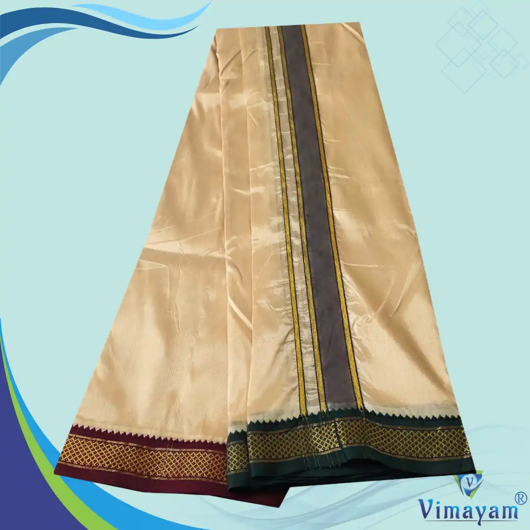 7 Kan Art Silk MayilKan Cream Colour Dhoti