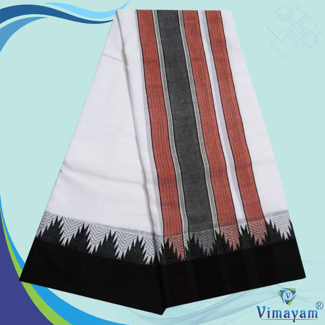 Black Border Vaishnava Pure Cotton White Dhoti with temple Tower Best Quality