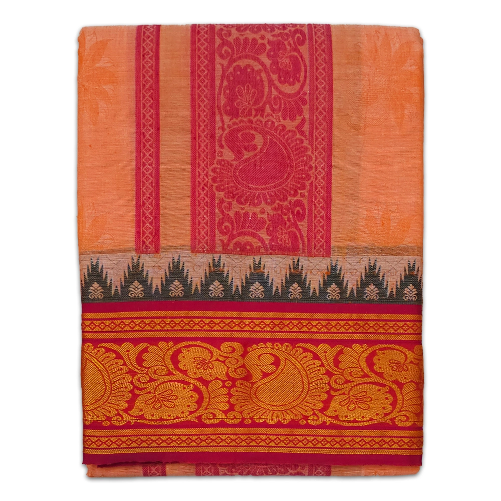 Peach Colour Premium Embose Cotton Dhoti with Towel 9X5
