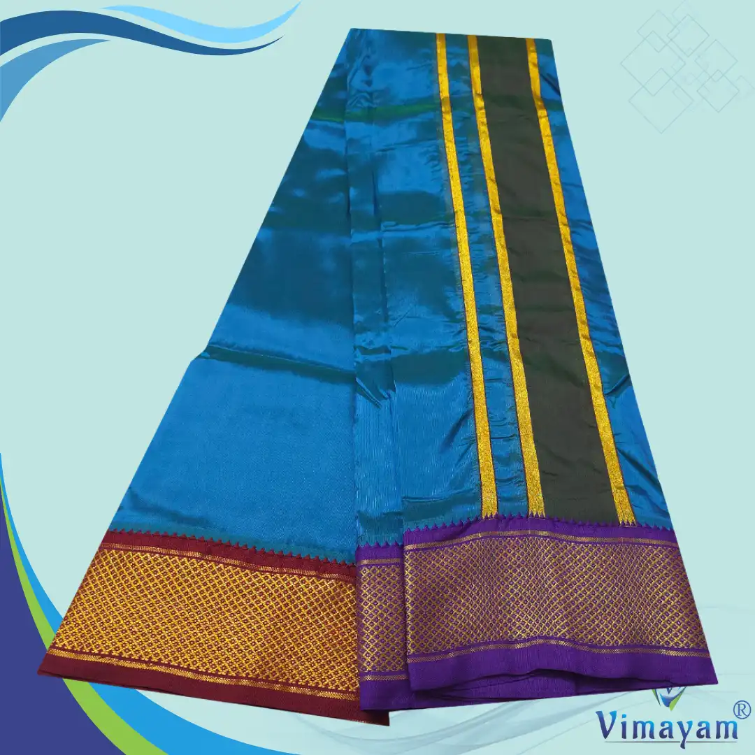 Peacock Blue Colour Art Silk MayilKan Colour Dhoti