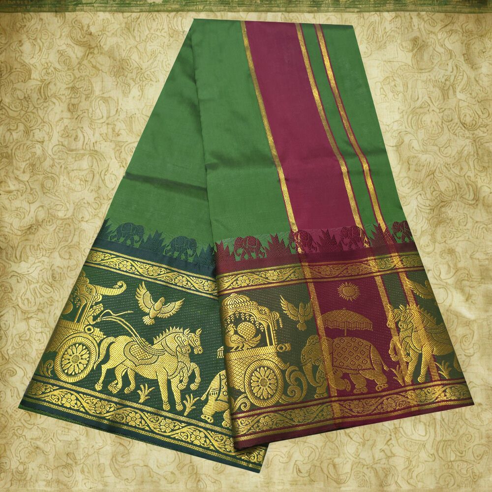Dark Green Colour Karishma Soft Silk 9 Inch Border Premium Quality Dhoti