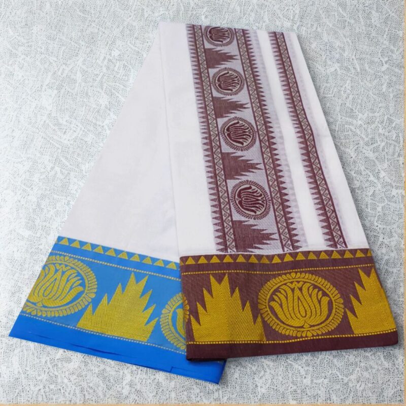 Note: Choose your item based upon the Design of the dhoti not by Border Colours. The Colour of the Borders are subject to availability. Do not place any order by mentioning specific Border Colours