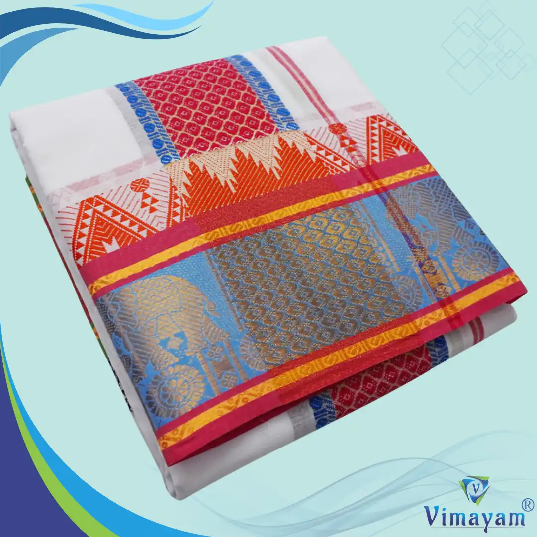 Note: Choose your item based upon the Model of the dhoti not by Border Colour Combinations. The border Colours are subject to availability. Do not place any order by mentioning specific Border Colours.