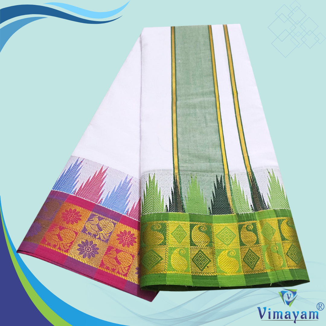 Double Colour Temple Border Premium Quality Cotton Dhoti
