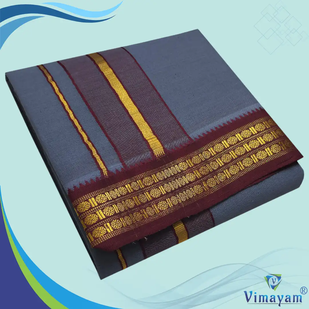 Grey Color Dhoti with Udraj/Coin Border Dhoti