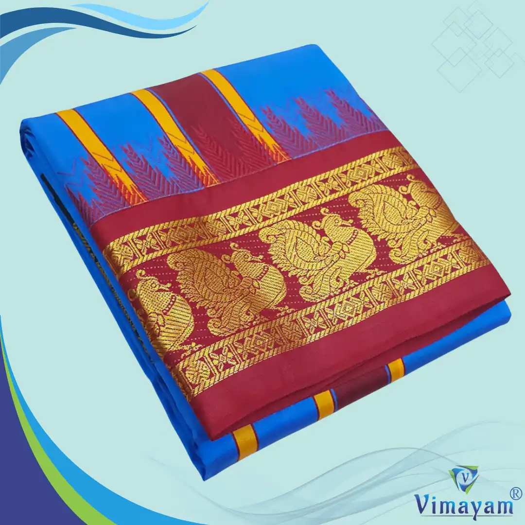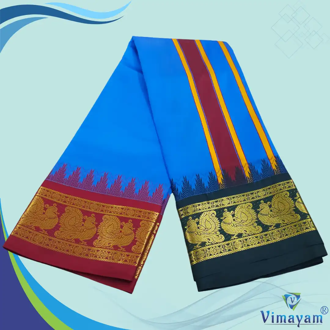 Note: Choose your item based upon the colour of the dhoti not by Border Design. The border Designs are subject to availability. Do not place any order by mentioning specific Borders.
