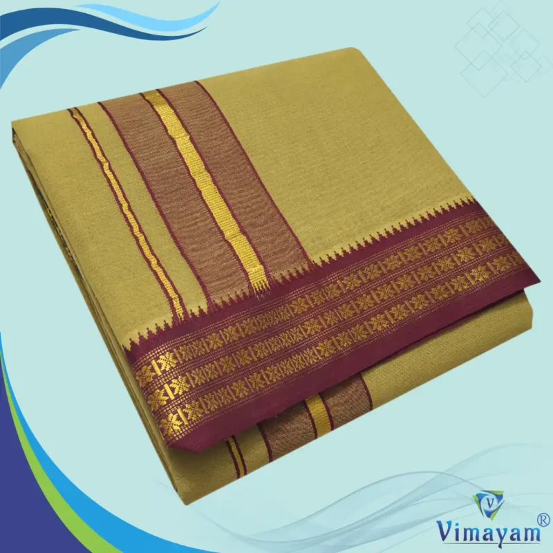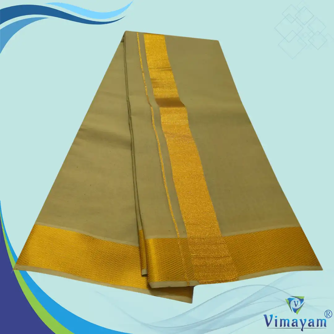 Khakki Color Dhoti with Golden Zari Border