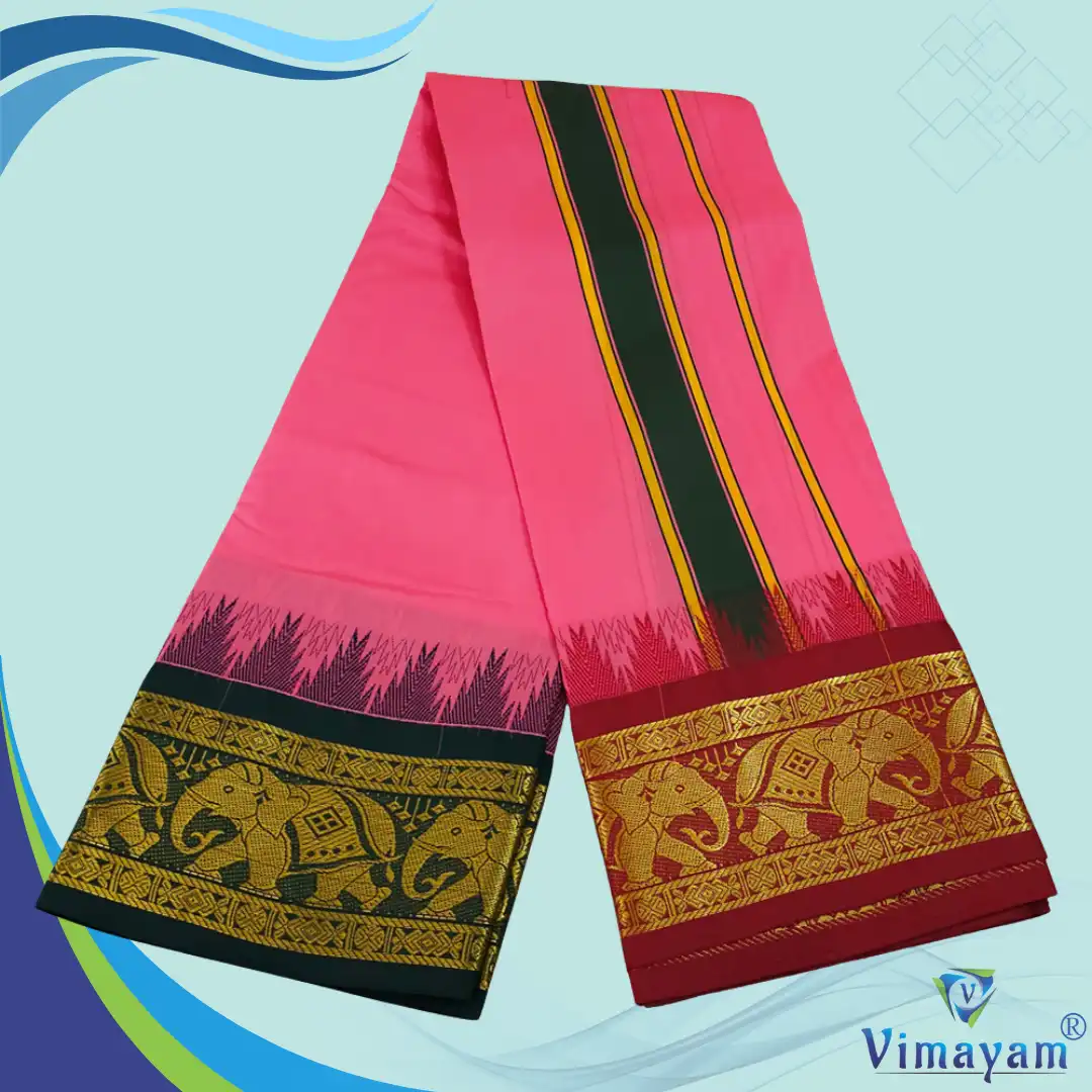 Note: Choose your item based upon the colour of the dhoti not by Border Design. The border Designs are subject to availability. Do not place any order by mentioning specific Borders.