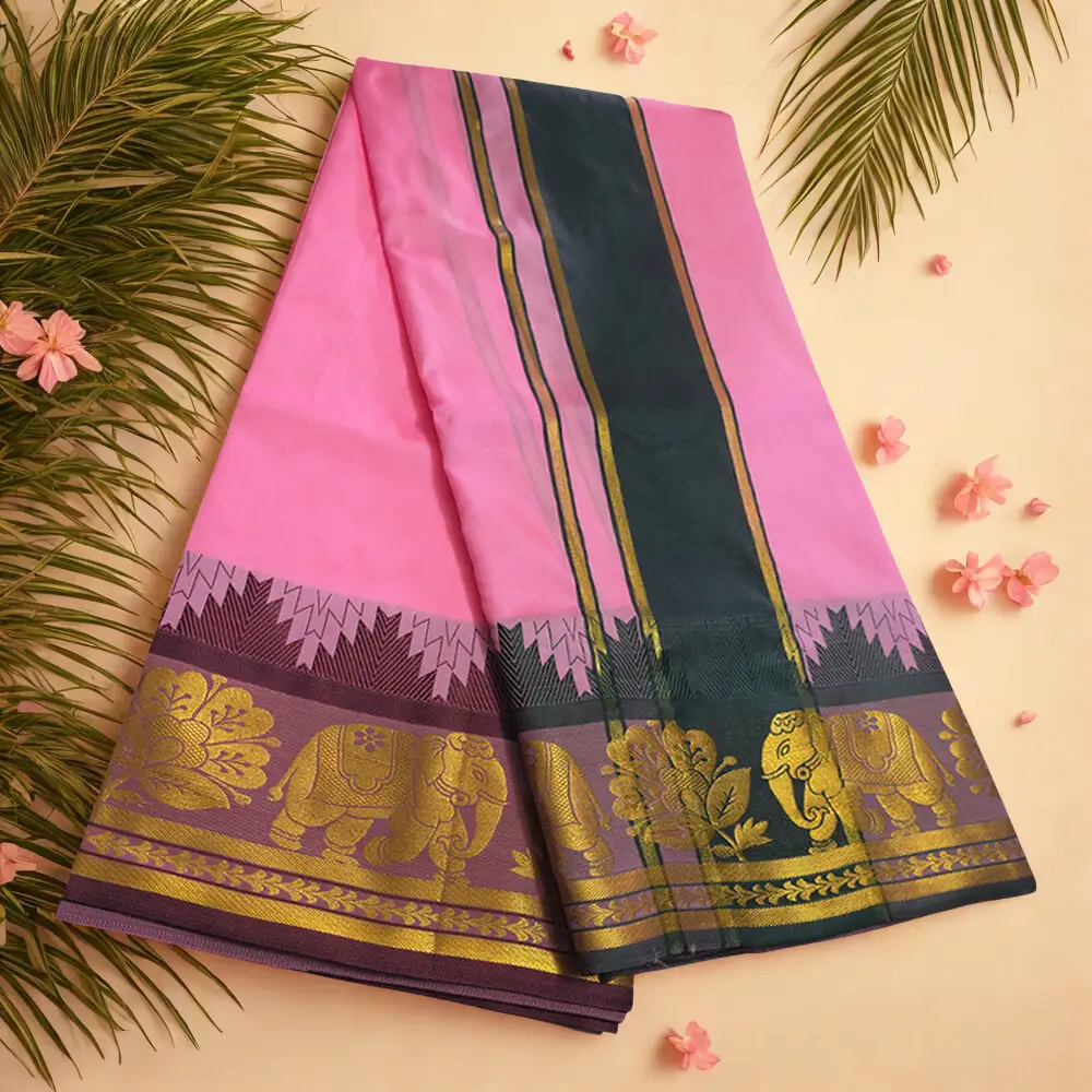 Note: Choose your item based upon the colour of the dhoti not by Border Design. The border Designs are subject to availability. Do not place any order by mentioning specific Borders.