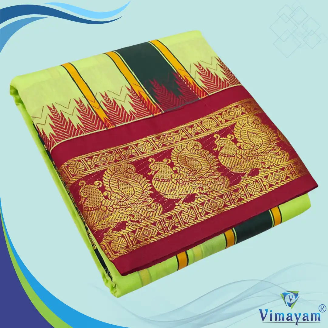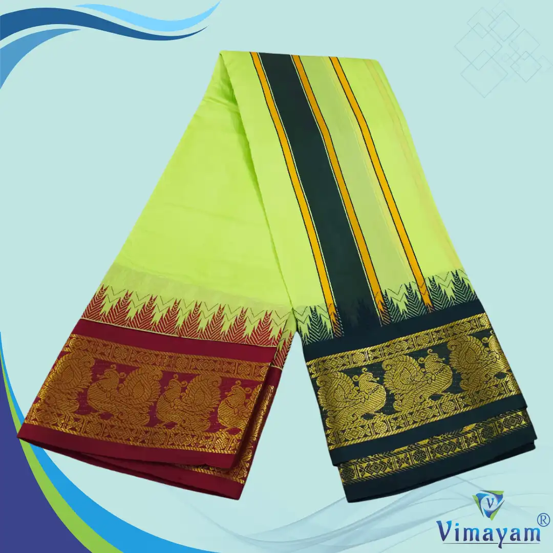 Note: Choose your item based upon the colour of the dhoti not by Border Design. The border Designs are subject to availability. Do not place any order by mentioning specific Borders.