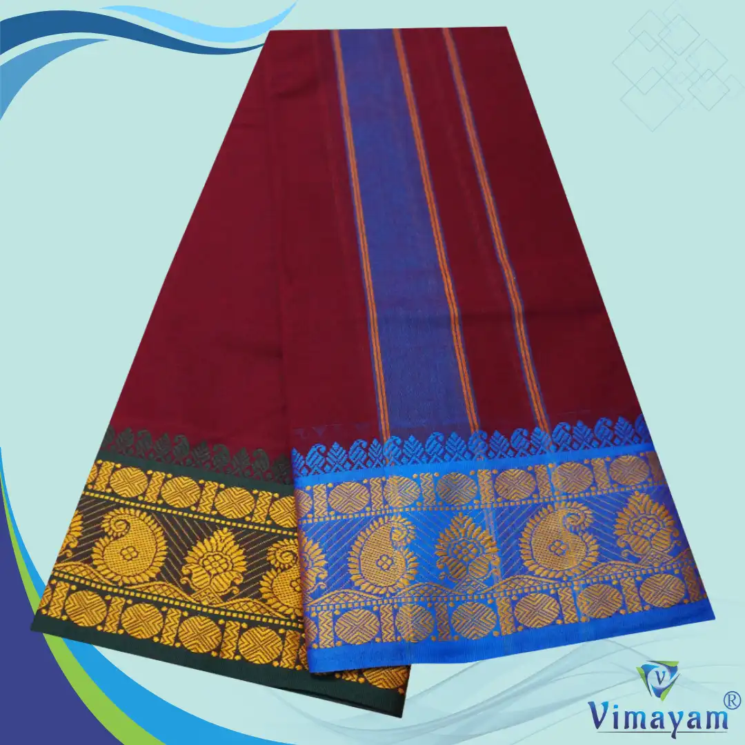 Note: Choose your item based upon the colour of the dhoti not by Border Design & Colour Combinations. The border Design and Colours are subject to availability. Do not place any order by mentioning specific Border design and Colours.