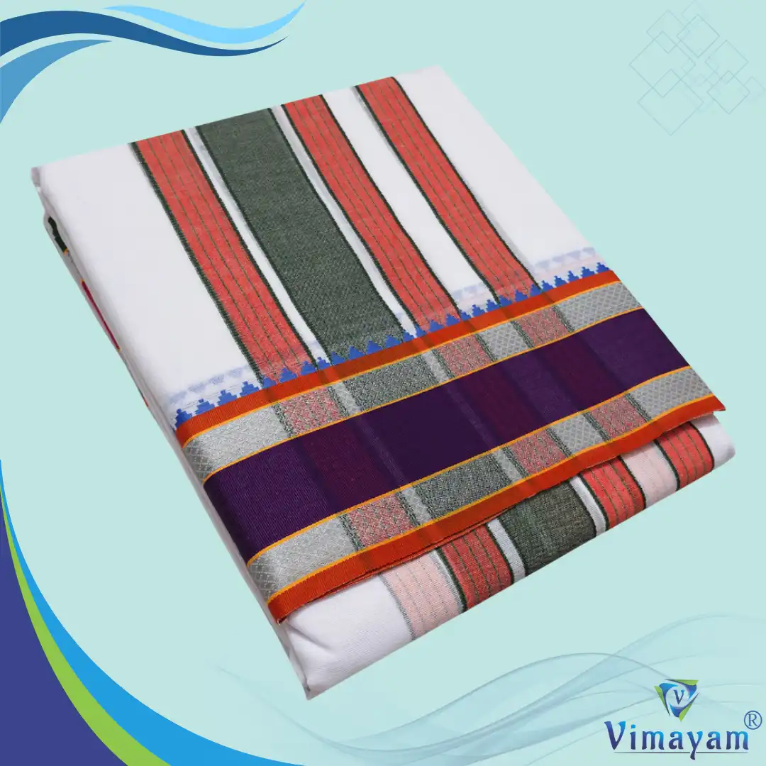 Note: Choose your item based upon the design of the dhoti, not by border color combinations. The border colors are subject to availability. Do not place any order by mentioning specific border colors.