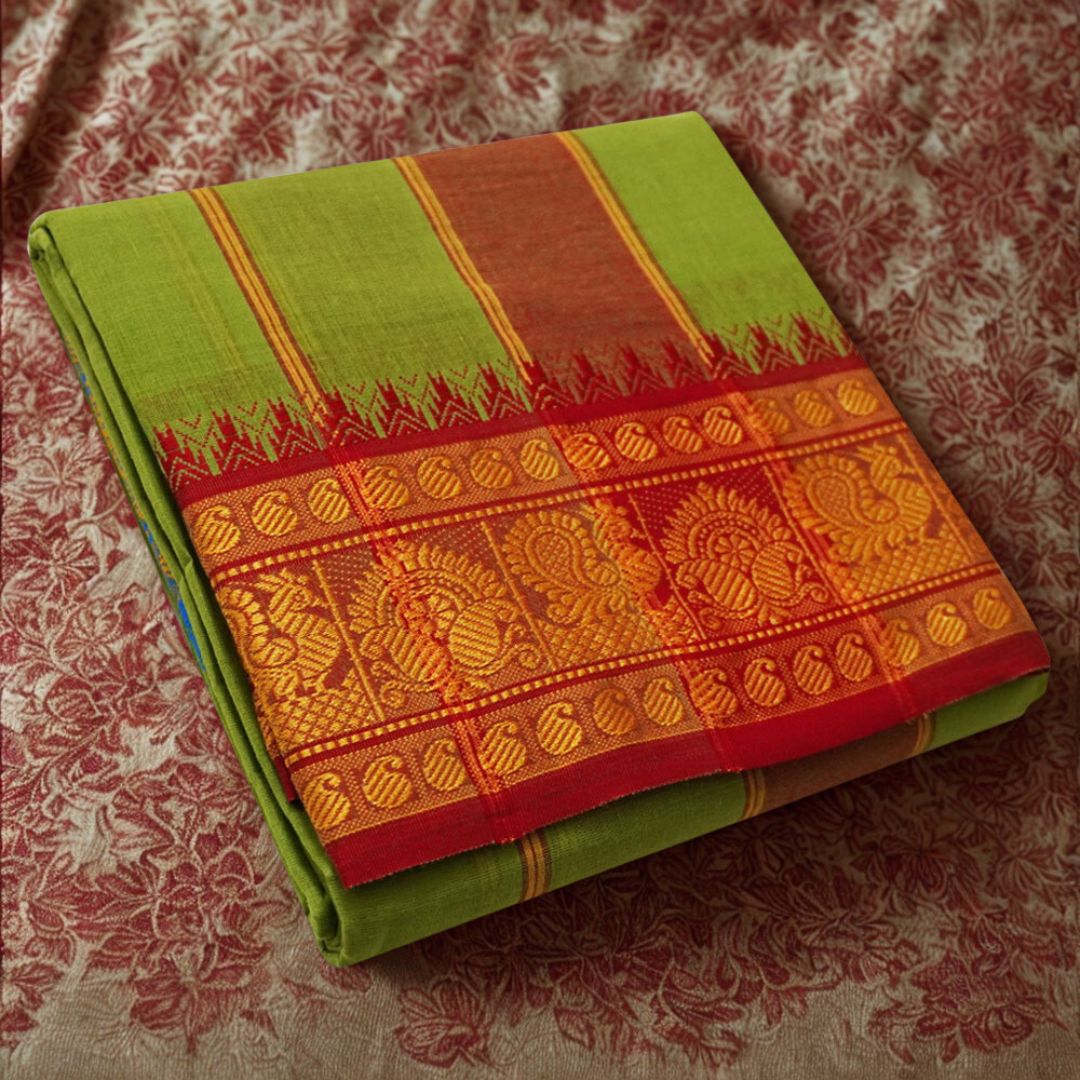 Note: Choose your item based upon the colour of the dhoti not by Border Design & Colour Combinations. The border Design and Colours are subject to availability. Do not place any order by mentioning specific Border design and Colours.