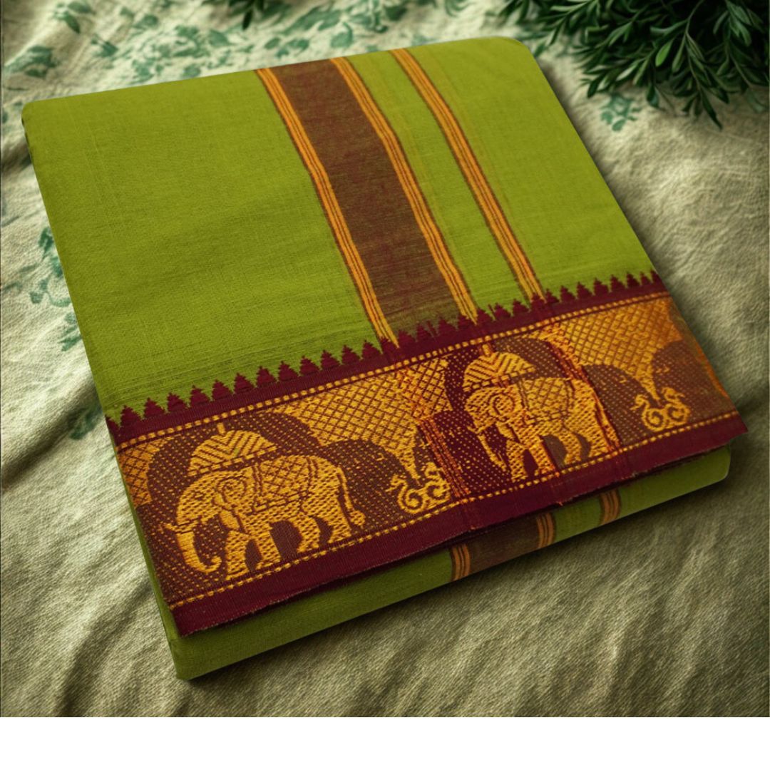 Note: Choose your item based upon the colour of the dhoti not by Border Design & Colour Combinations. The border Design and Colours are subject to availability. Do not place any order by mentioning specific Border design and Colours.