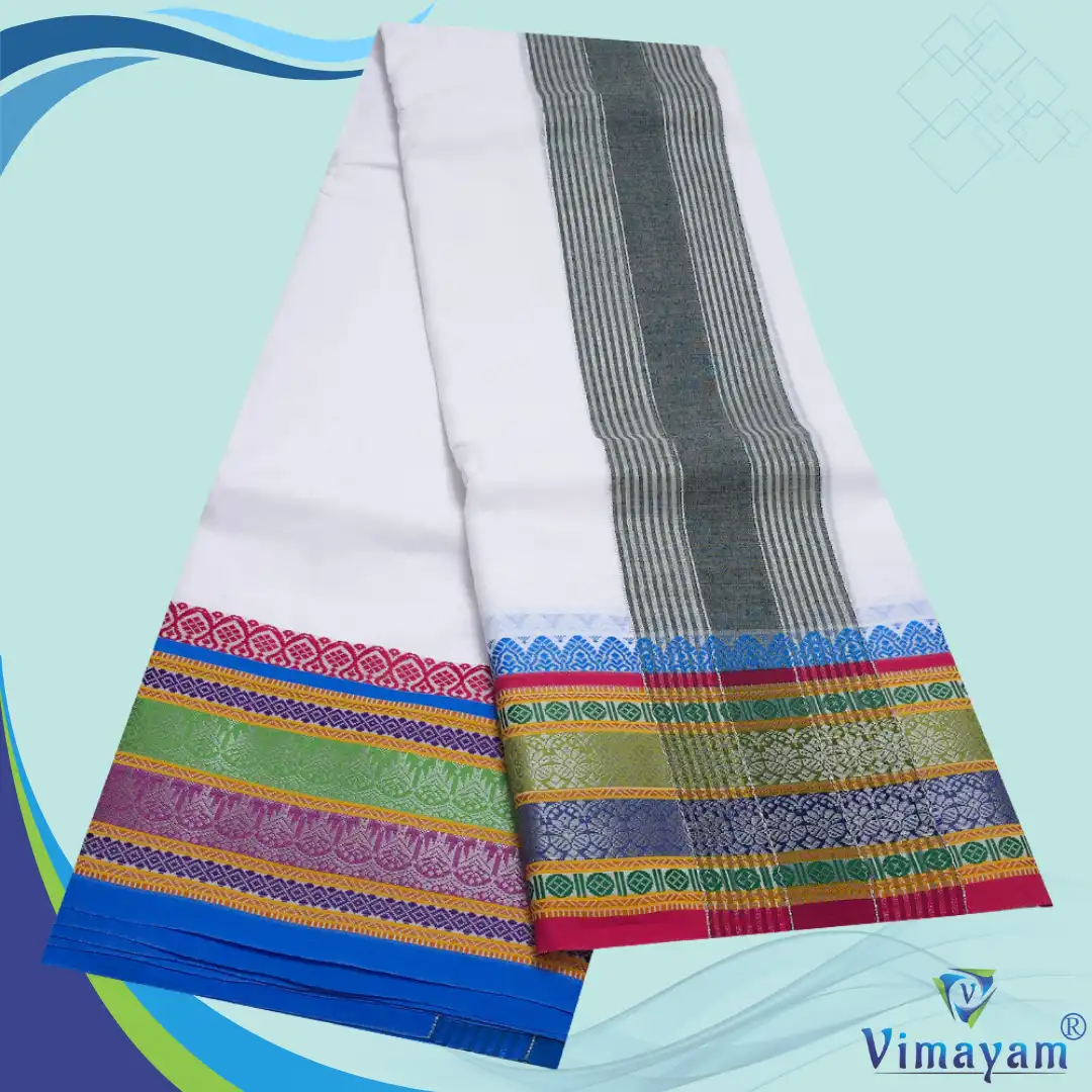 Multi Colour Special Zarigai White Vaishnava Dhoties 9X5