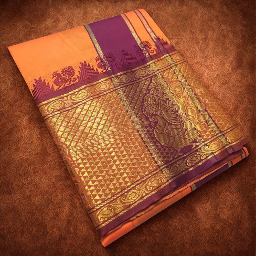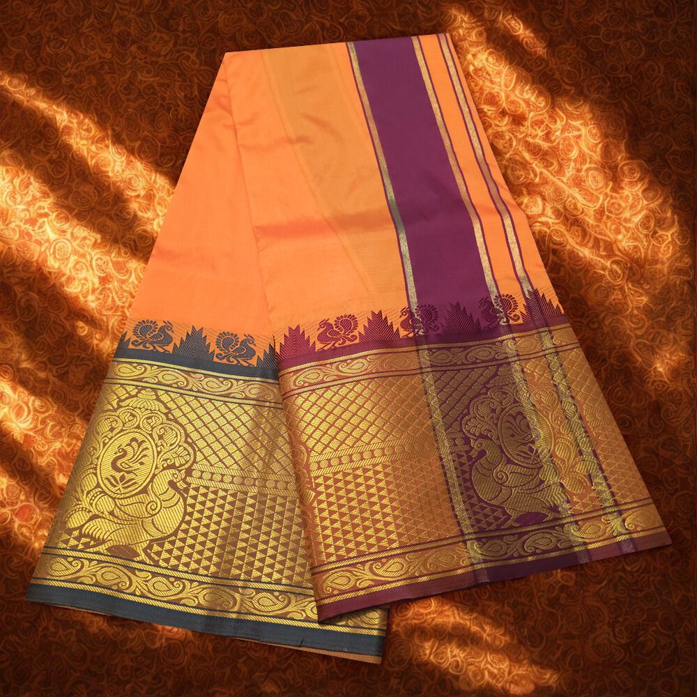 Orange Colour Karishma Soft Silk 9 Inch Border Premium Quality Dhoti