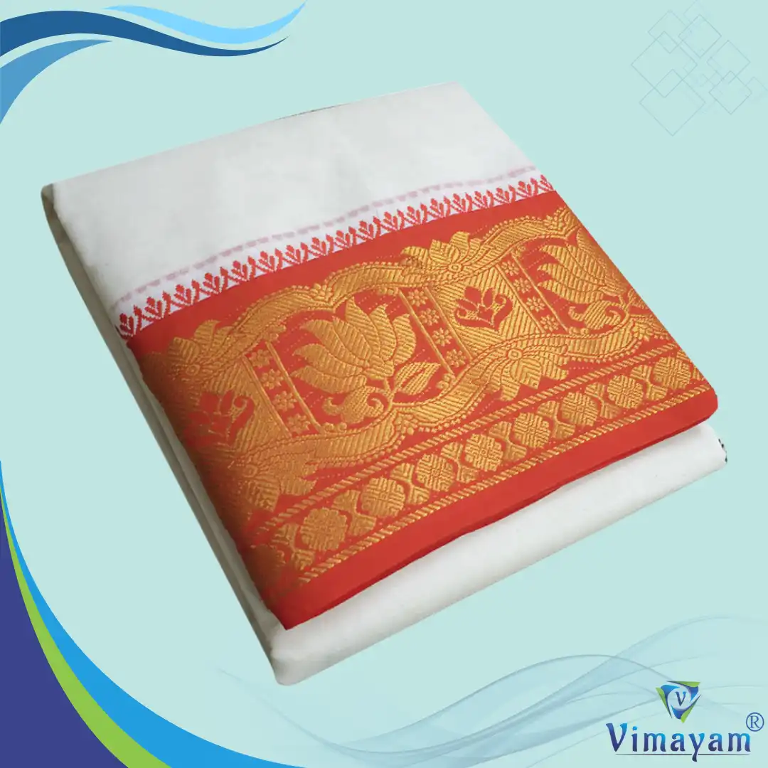 Choose your item based upon the Border colour of the dhoti not by Border Design Combinations. The border Designs are subject to availability. Do not place any order by mentioning specific Border Designs.