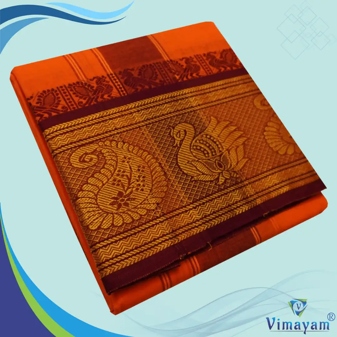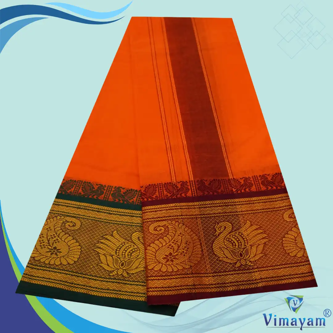 Be the first to review “Orange Cotton Colour Fine Quality Dhoti 8 Inch Border”