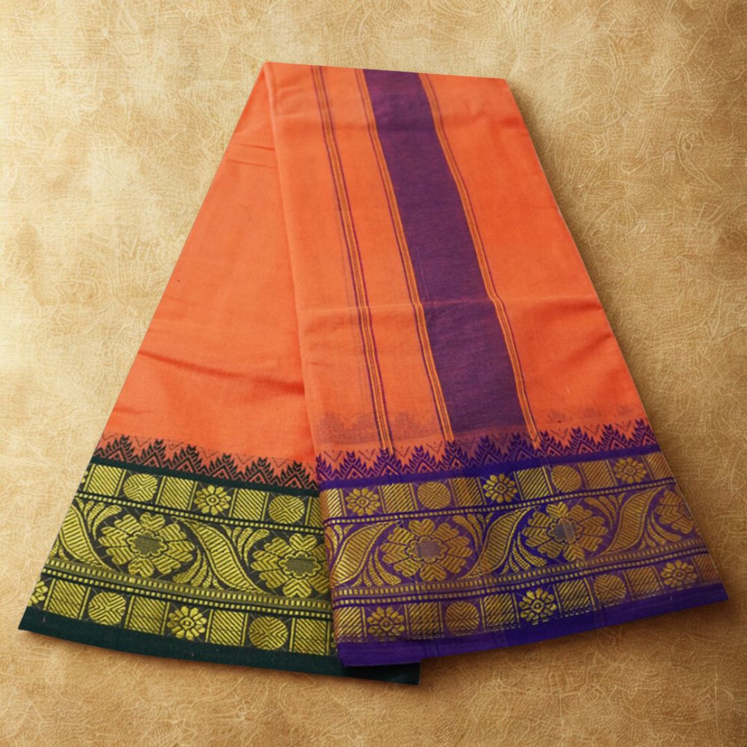 Note: Choose your item based upon the colour of the dhoti not by Border Design & Colour Combinations. The border Design and Colours are subject to availability. Do not place any order by mentioning specific Border design and Colours.