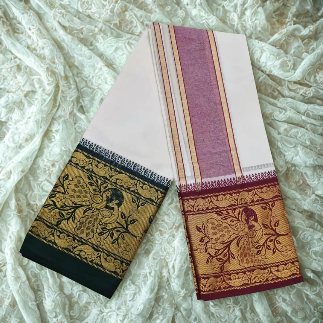 Peacock Designed 10″ Border Premium Quality Dhoti