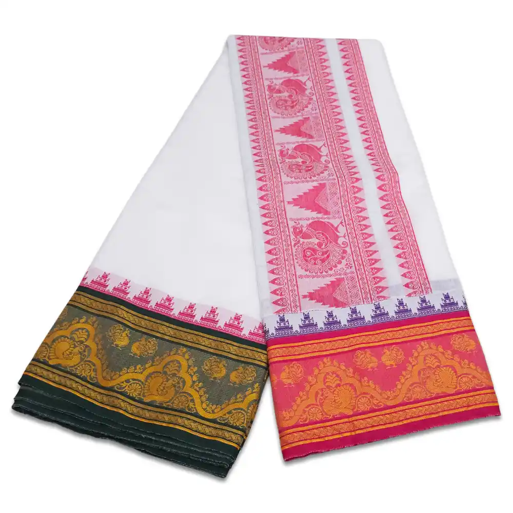 Note: Choose your item based upon the Design of the dhoti not by Border Colours. The Colour of the Borders are subject to availability. Do not place any order by mentioning specific Border Colours