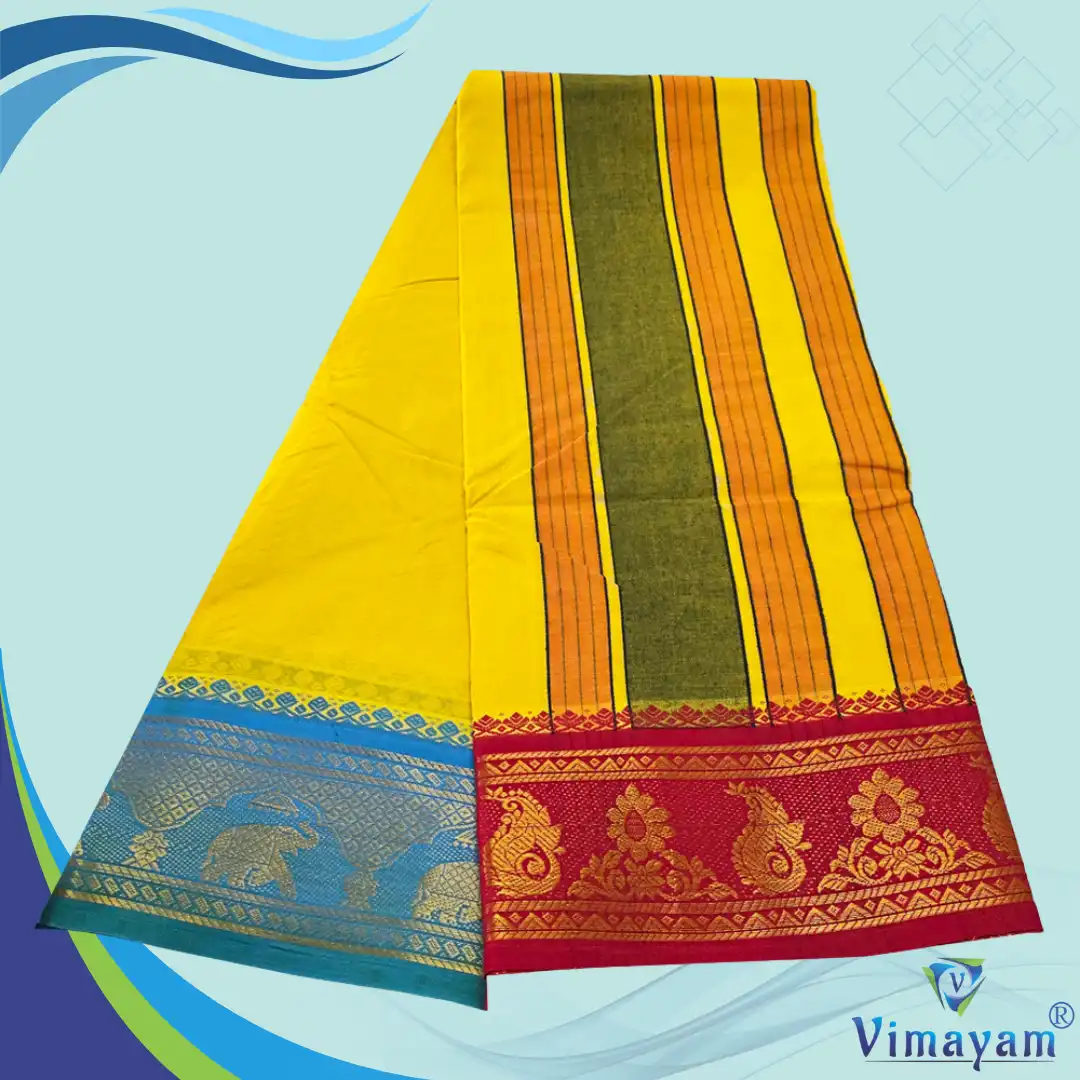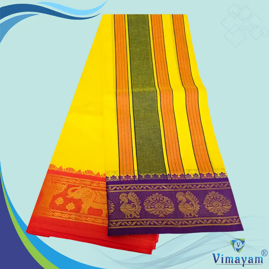 Premium Quality Assorted Border yellow Colour Sri Vaishnava Dhoti 9X5