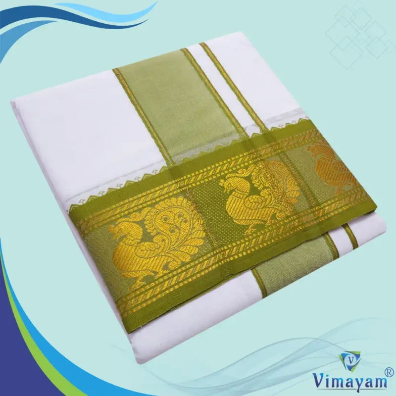Pure Cotton Dhoti Premium Quality with Green and with matching Border
