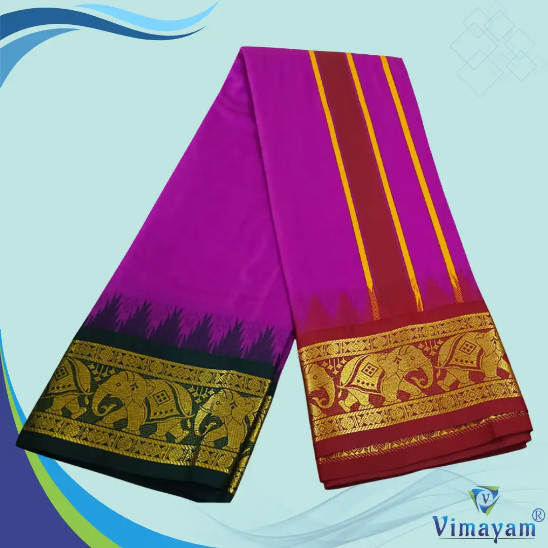 Note: Choose your item based upon the colour of the dhoti not by Border Design. The border Designs are subject to availability. Do not place any order by mentioning specific Borders.