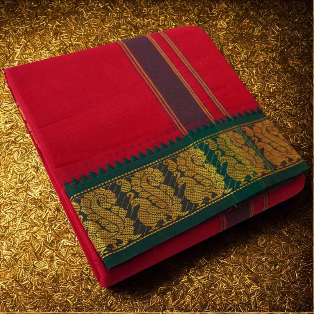 Red Cotton Colour Fine Quality Dhoti 3 Inch Border