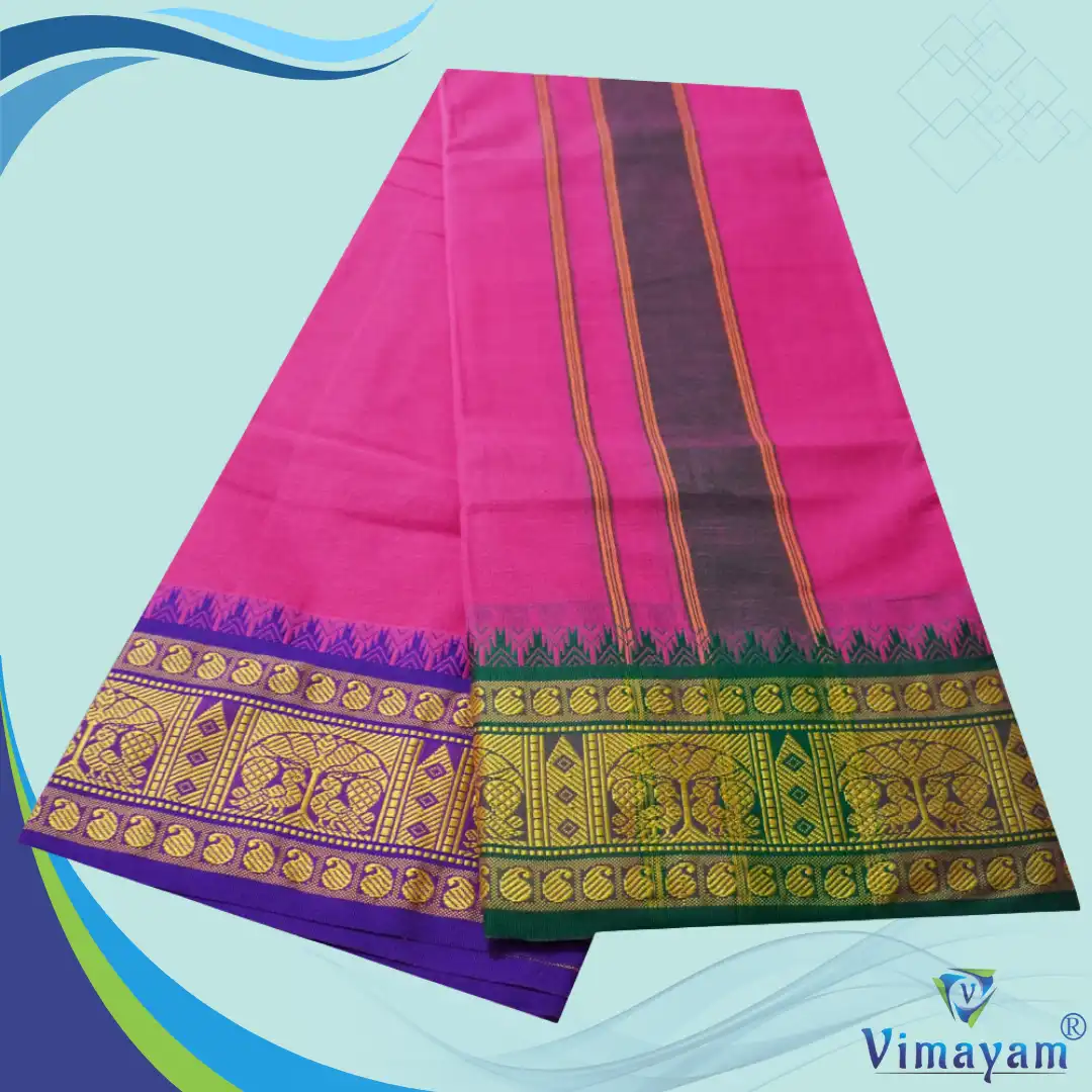 Note: Choose your item based upon the colour of the dhoti not by Border Design & Colour Combinations. The border Design and Colours are subject to availability. Do not place any order by mentioning specific Border design and Colours.