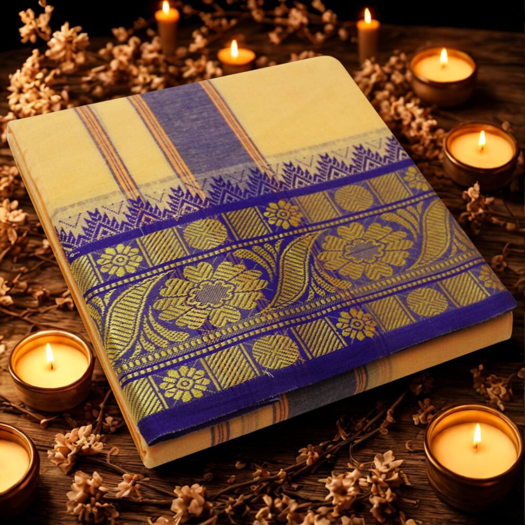 Note: Choose your item based upon the colour of the dhoti not by Border Design & Colour Combinations. The border Design and Colours are subject to availability. Do not place any order by mentioning specific Border design and Colours.