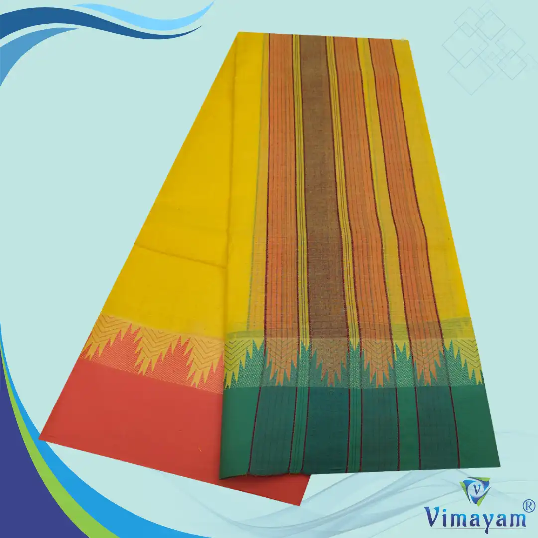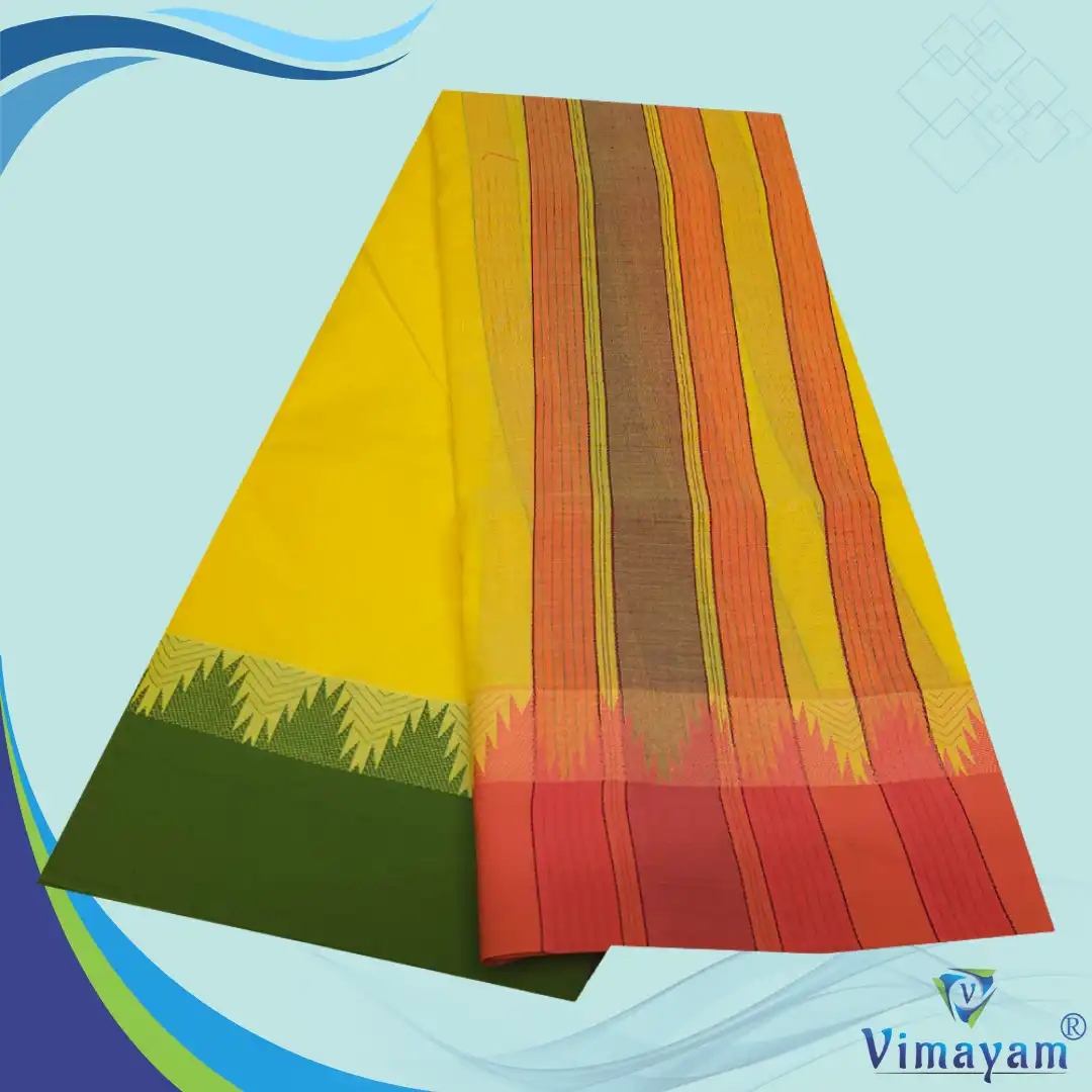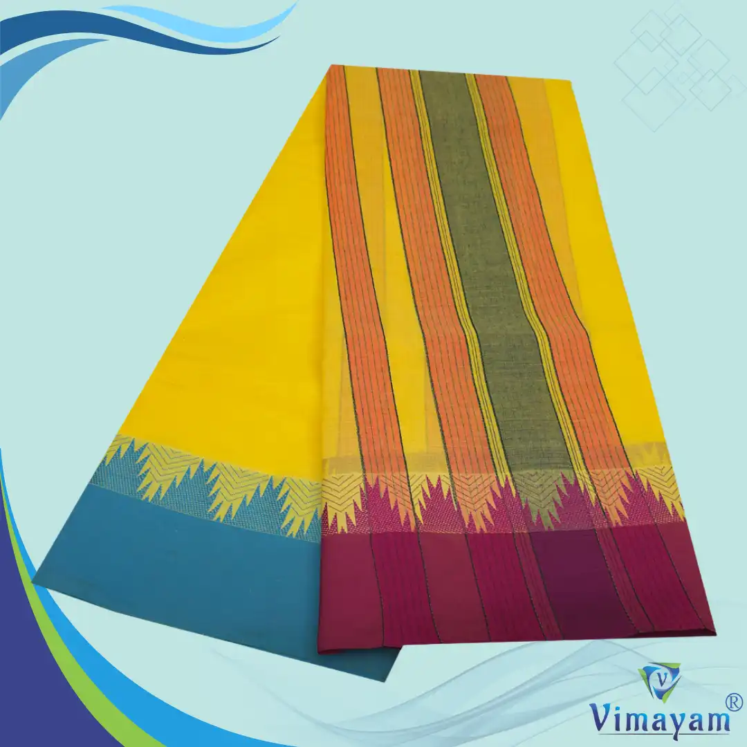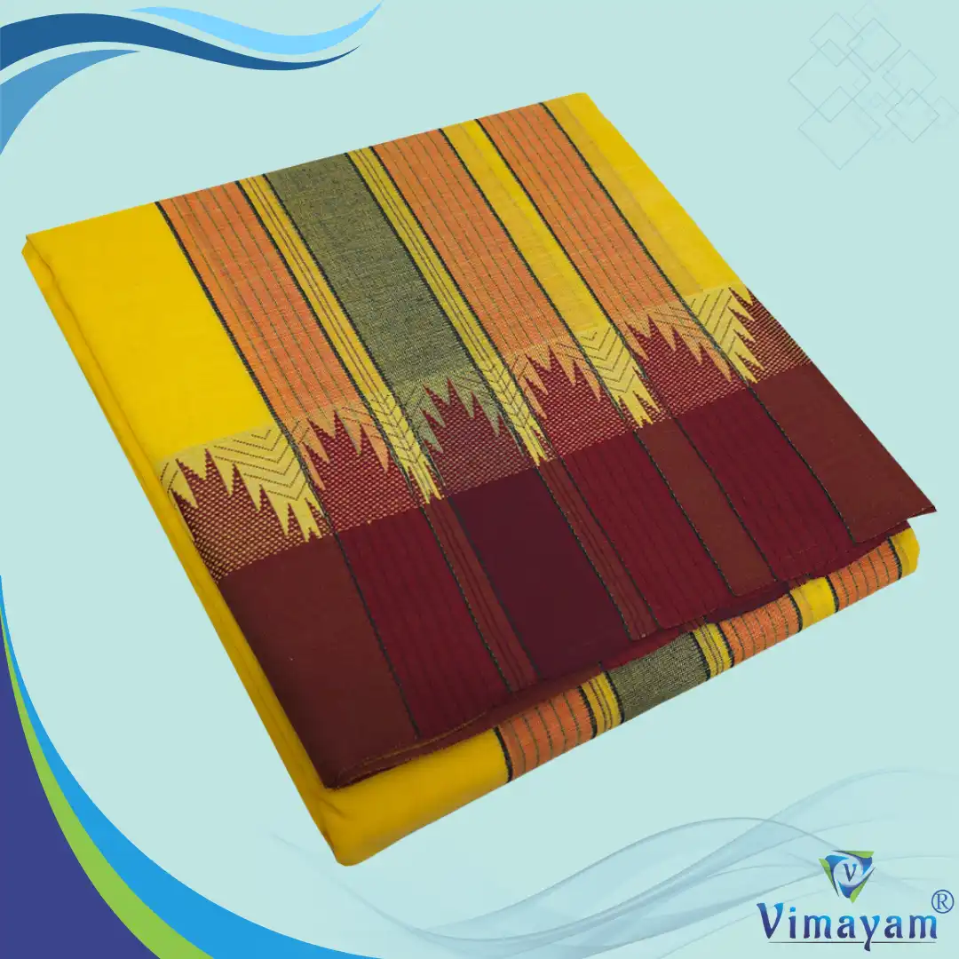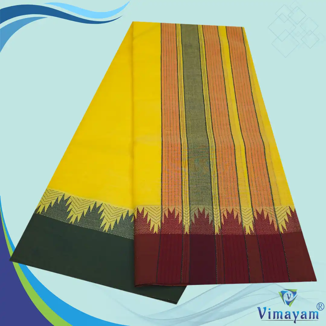 Temple Border Yellow Premium Quality Assorted Border Dhoti 9X5