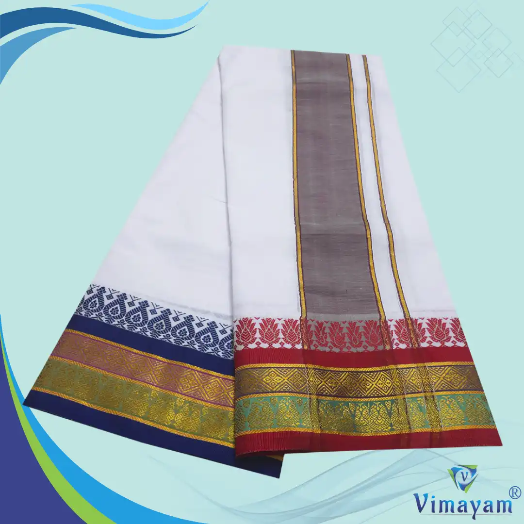 Note: Choose your item based upon the Design of the Dhoti not by Design Combination, the Design of the Borders are subject to availability. Do not place any orders by mentioning specific border & Colours.