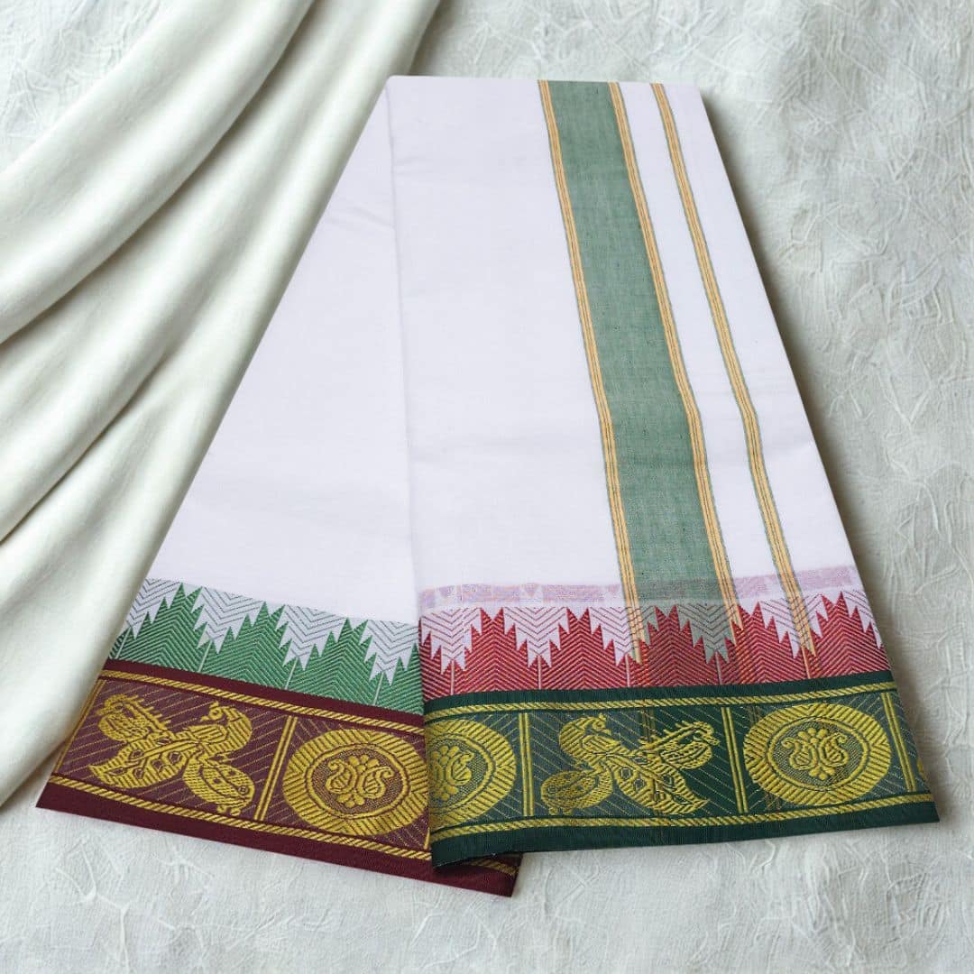 Temple Border Pure White Dhoti 9X5