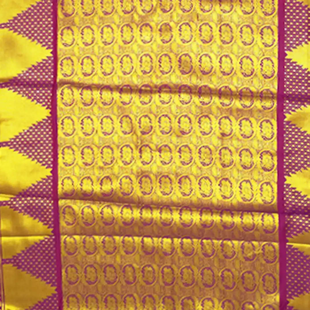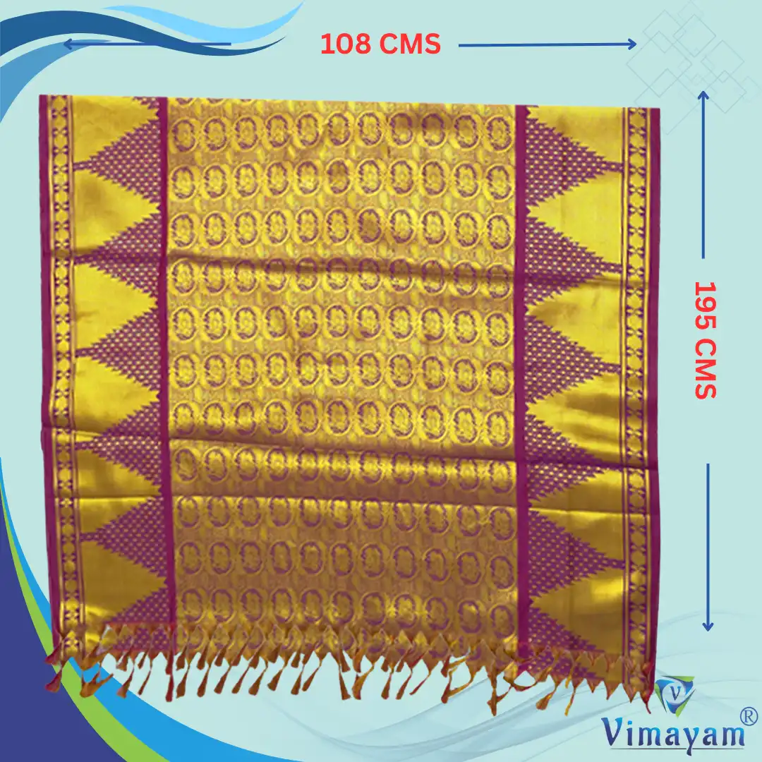 This shawl or malai is perfect to offer to temple priests, gurus, elders, or as a gift to the gods. Its elaborate zari border and sparkling art silk texture capture the richness of our spiritual heritage.