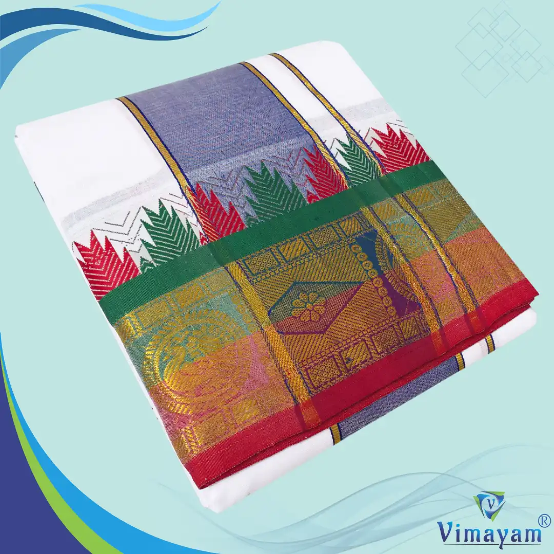 Note: Choose your item based upon the Design of the Dhoti not by Color & Design Combination, the Color & Design of the Borders are subject to availability. Do not place any orders by mentioning specific border & Colours.
