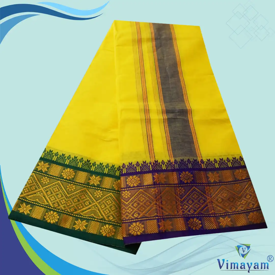 Note: Choose your item based upon the colour of the dhoti not by Border Design & Colour Combinations. The border Design and Colours are subject to availability. Do not place any order by mentioning specific Border design and Colours.