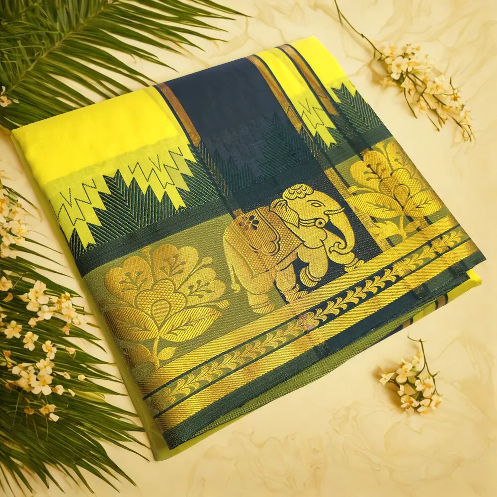 Yellow Soft Silk Premium Quality Dhoti Towel 9X5