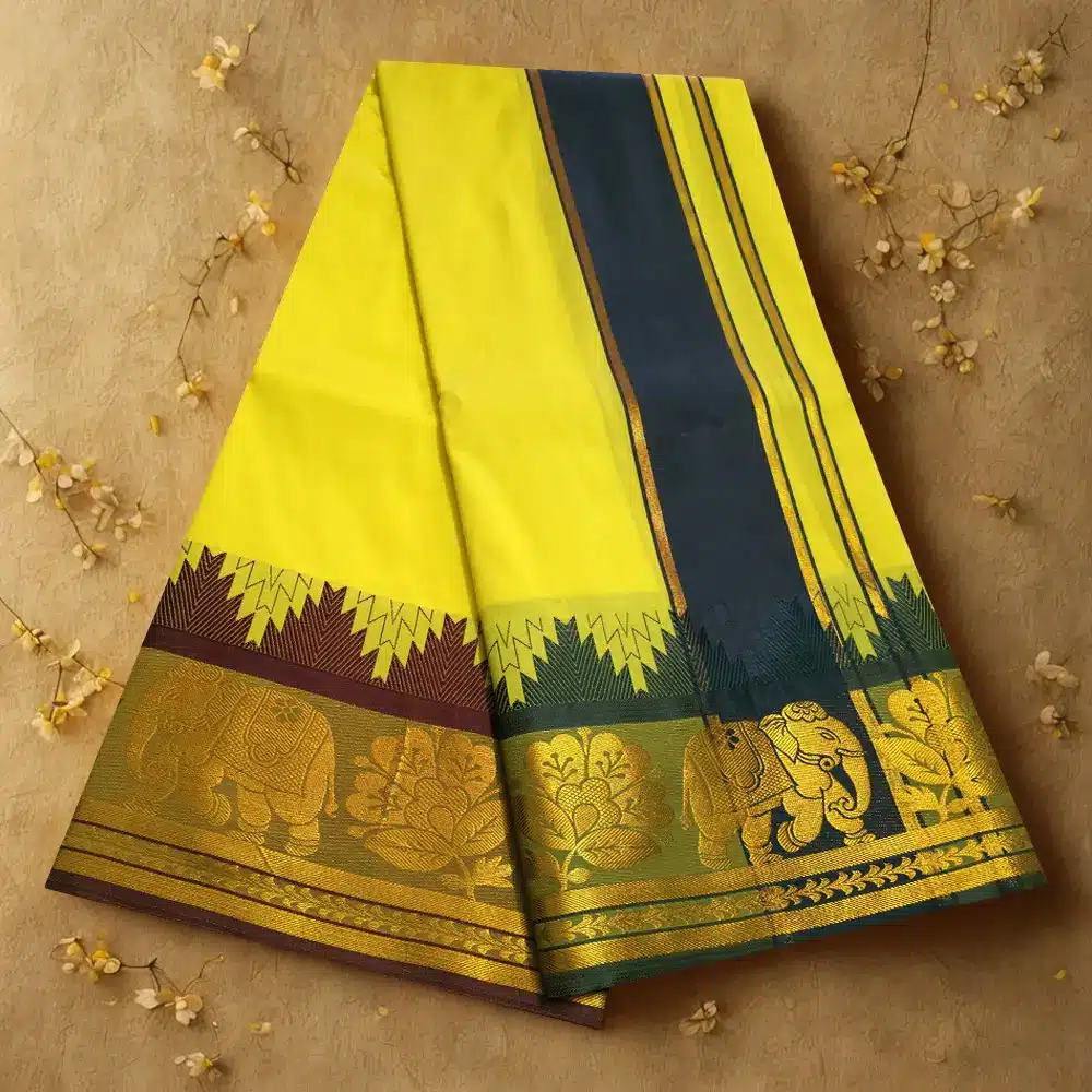 Note: Choose your item based upon the colour of the dhoti not by Border Design. The border Designs are subject to availability. Do not place any order by mentioning specific Borders.